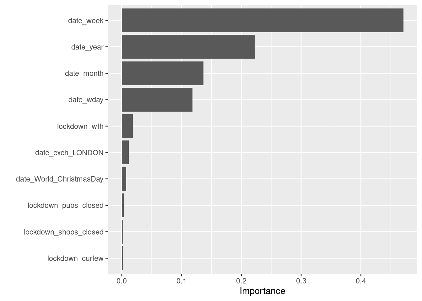 The top 4 feature are the same as before, but this time the working from home mandate is the 5th most important feature.